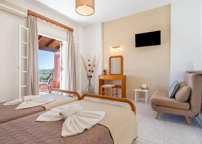 Villa Bambas Resort Astrakeri te invita a disfrutar de unas vacaciones inolvidables en Karousades, un rincón encantador de Corfú. Este acogedor resort ofrece apartamentos y estudios, todos con acceso gratuito a Wi-Fi y impresionantes vistas al mar Jónico, perfectos para relajarte mientras disfrutas del sol griego.